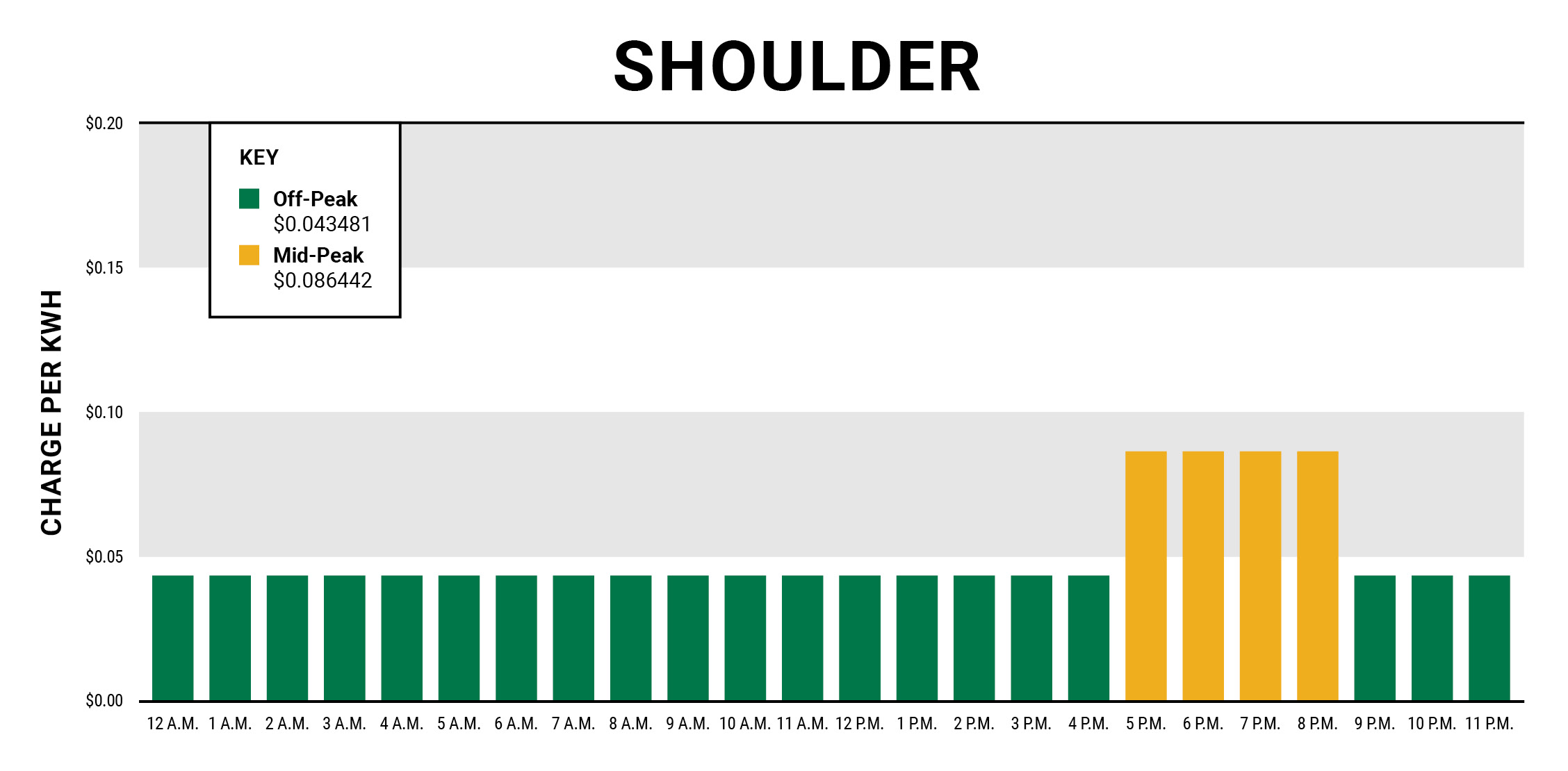 Shoulder | Off-Peak | 12:01 a.m.-5 p.m.; 9:01 p.m.-12 a.m. | $0.043481 |